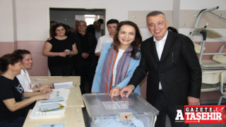 Coşkun çifti kabine geçerek Ataşehir ve İBB Başkan Adayları, Meclis Üyesi Adaylarının yer aldığı birleşik oy pusulaları ile birlikte mahalle muhtarlarını belirlemek için oyunu kullandı ve zarfı sandığa attı.