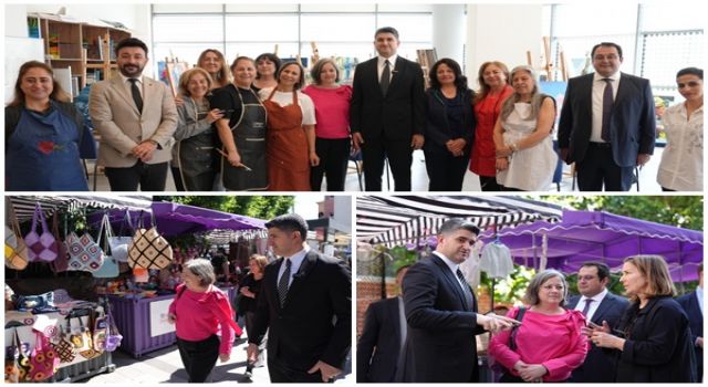Daha sonra, İnal Aydınoğlu Kültür Merkezi’nde devam eden Kadın Emeği Sergisi’ni ve Köy Enstitüleri Sergisi’ni gezen Başkan Adıgüzel ve Başkonsolos Grienberger, sergi sahibi Karabey Aydoğan’dan Köy Enstitüleri Sergisi hakkında bilgi aldılar.