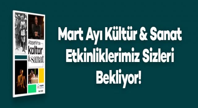 Ataşehir Belediyesi, sanatseverleri Mart ayında da kültür sanat etkinlikleriyle buluşturmayı sürdürüyor. Her yaşa hitap eden etkinlik programında; konser, sergi, söyleşi, tiyatro oyunları, stand up gösterileri ve atölyeler yer alacak.