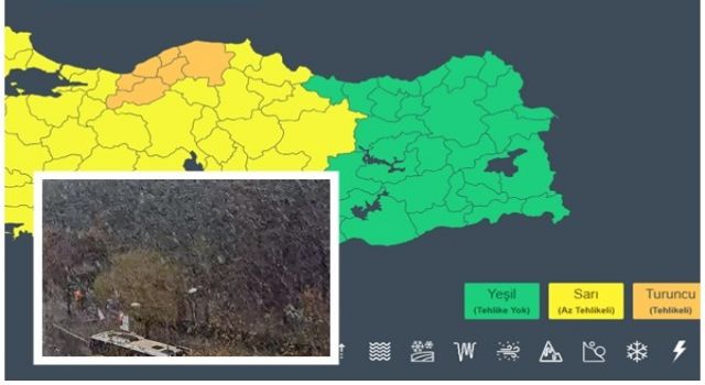 Turuncu uyarı verilen iller: Bolu, Erzincan, Gümüşhane, Rize, Sivas, Trabzon, Bayburt, Bartın, Düzce, Giresun, Kastamonu, Ordu, Tokat, Tunceli, Zonguldak, Karabük.