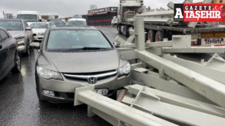 Ataşehir'de tır kasasındaki inşaat malzemeleri araçların üzerine düştü