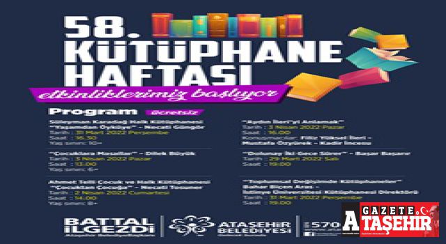 Ataşehir Belediyesi bu yıl 58’incisi gerçekleşecek olan Kütüphaneler Haftası’nı çeşitli etkinliklerle kutlamaya hazırlanıyor. 29 Mart Salı günü başlayacak programda bazen altını çizdiğiniz, bazen uçları kırılmasın diye özen gösterdiğiniz, bazen de kokusunu içinize çektiğiniz kitapların yazarları okurlarıyla buluşacak.