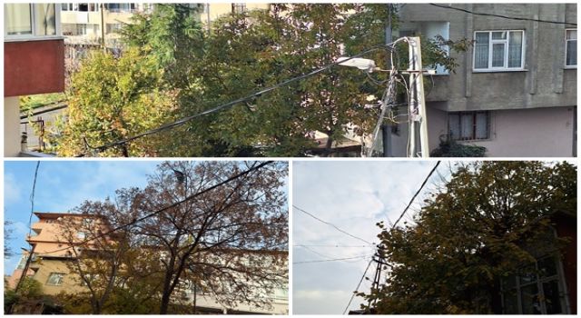 Bu sokakta ağaç dalları ile elektrik tellerini sarmış durumda ve kötü hava şartlarında tehlike yaratarak elektriklerin ara sıra kesilmesine neden oluyor.