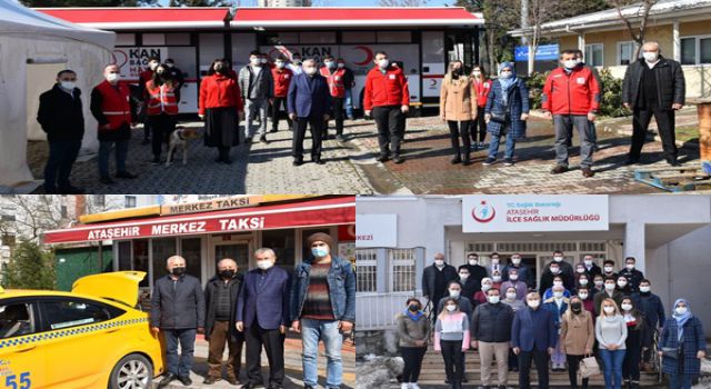 AK Parti Ataşehir İlçe Başkanı İsmail Edem ve yönetimi koronavirüs ile mücadele kapsamında ilk günden bu yana vatandaşların sağlığı,ihtiyaçları ve güvenliği için gece gündüz demeden fedakarca gayret göstererek çalışan ilçe sağlık müdürü Fatih Kırklar ve personeli filyasyon ekibi ,KIZILAY Başkanı Talha Keleş ve destek grubu, sahada asayişi sağlamak için nöbet tutan emniyet mensubu polislerimize börek,tatlı ve çay ikramları eşliğinde teşekkür ziyaretinde bulundular .