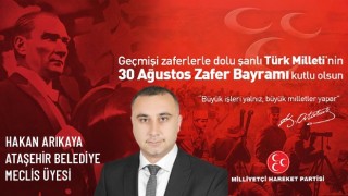 Ataşehir Belediye Meclis ve daimi Encümen Üyesi Arif Kuşçu yayınladığı 30 Ağustos Zafer Bayramı mesajında; “30 Ağustos Türkiye’nin geleceği için binlerce şehidin, milli birlik ve beraberlik ruhu içinde canları pahasına, özgürlük ve bağımsızlık meşalesinin sonsuza dek sönmemek üzere yakıldığı büyük bir zaferdir. Bu zaferin ışığı altında nice güzel 30 Ağustos Zafer Bayramlarında buluşmak dileklerimizle…