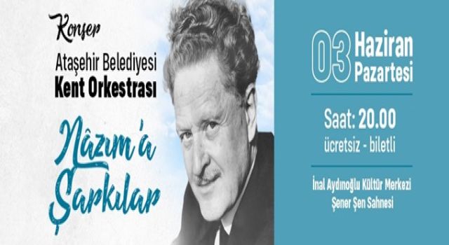 Ataşehir Belediyesi Kent Orkestrası, Türk Edebiyatı’nın önemli isimlerinden Nazım Hikmet'in anısına, 61. ölüm yıl dönümünde onun eserlerine yer verecekleri özel bir konser düzenliyor.