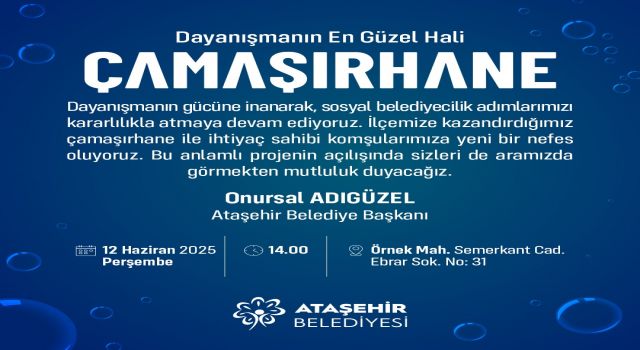 Ataşehir Belediyesi, ihtiyaç sahibi vatandaşlar ve ilçede yaşayan üniversite öğrencileri için ücretsiz “Çamaşırhane” hizmetini hayata geçirdi. Sosyal belediyecilik anlayışıyla hizmetlerini artıran Ataşehir Belediyesi, Çamaşırhane hizmeti ile ekonomik zorluklar yaşayan bireylerin hijyen ihtiyaçlarını karşılamalarına destek olacak.