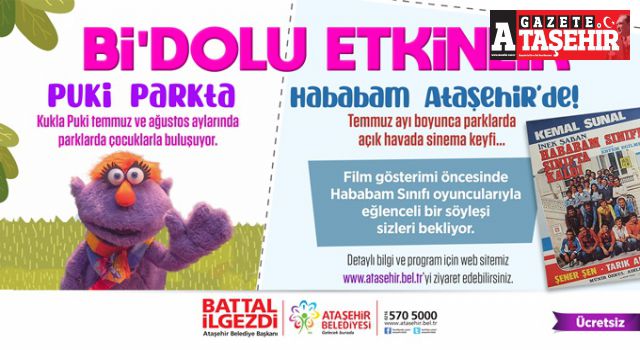 Temmuz ve Ağustos aylarında çocuklar için hazırlanan “Puki Parkta” ile “Hababam Sınıfı Sınıfta Kaldı” nostalji sinema filmi Ataşehirlilerle buluşacak.