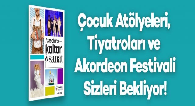 Kültür- sanat etkinlikleri kapsamında yetişkinler için 6-7-8 Aralık tarihlerinde 4. Uluslararası İstanbul Akordeon Festivali gerçekleştirilirken, çocuklar için de eğlenceli tiyatro oyunları ve eğitici atölyeler düzenlenecek. Aralık ayı içerisinde ayrıca Anadolu müziğinin usta isimleri; Erkan Oğur, İsmail Hakkı Demircioğlu, Ahmet Aslan, Metin ve Kemal Kahraman kardeşler Ataşehir’de sahne alacaklar. Çellonun derin ve büyüleyici tınılarını popüler müziğin enerjik ruhuyla bir araya getiren CelloStones Orkestra da yeni yıl konseriyle Ataşehirlilerle buluşacak.