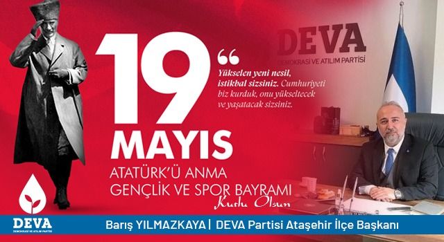 DEVA Partisi Ataşehir İlçe Başkanı Barış Yılmazkaya, 19 Mayıs Atatürk’ü Anma, Gençlik ve Spor Bayramı mesajında;