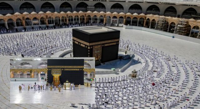 Covid-19 salgını nedeni ile Mescid-i Haram'daki halıların kaldırılacağı belirtilen genelgede, sosyal mesafenin korunmasının sağlamak amacıyla 2 metrelik aralıklarla yerlere etiketler yapıştırılacağı aktarıldı.