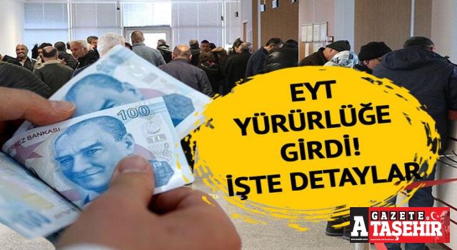 Son dakika haberine göre, emeklilikte yaşa takılanlarla (EYT) ilgili düzenlemeleri içeren Sosyal Sigortalar ve Genel Sağlık Sigortası Kanunu ile 375 sayılı Kanun Hükmünde Kararnamede Değişiklik Yapılmasına Dair Kanun, Resmi Gazete'de yayımlanarak yürürlüğe girdi. EYT düzenlemesinin detayları da belli oldu. Kanuna göre, aylık bağlanması talebinde bulunanlar, yaş dışındaki diğer şartları taşımaları halinde yaşlılık veya emekli aylığından yararlanacak. Peki, başvurular nasıl olacak? İşte detaylar...