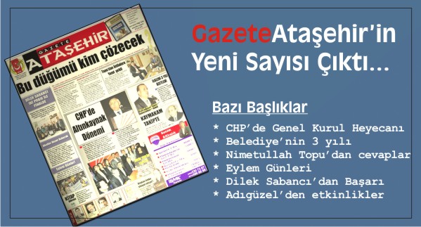 Gazete Ataşehir'in Yeni Sayısı Çıktı...Öne çıkan bazı başlıklar