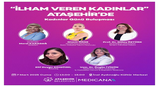 Ataşehir Belediyesi ve Medicana Sağlık Grubu, 8 Mart Dünya Emekçi Kadınlar Günü dolayısıyla özel ve anlamlı bir etkinliğe imza atacaklar. Kadınların gücüne ve toplumsal katkılarına vurgu yapmak amacıyla 7 Mart Cuma günü gerçekleştirilecek olan “İlham Veren Kadınlar” etkinliği, özel konuşmacılar ve katılımcıları bir araya getirecek.