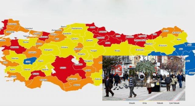 Edirne, Balıkesir, Sakarya, Burdur, Konya, Aksaray, Sinop, Samsun, Amasya, Tokat, Ordu, Giresun, Gümüşhane, Trabzon, Rize, Osmaniye ve Adıyaman ise çok yüksek riskli (kırmızı) iller olarak yer alıyor.