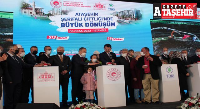 Çevre, Şehircilik ve İklim Değişikliği Bakanlığı öncülüğünde TOKİ ev sahipliğinde Ataşehir'de geçtiğimiz yıl kentsel dönüşüm kapsamında ihalesi yapılan ve yıkım işlemleri sonrası hafriyat alımları başlanan Şerifali Çiftliği İmar İskan Blokları 1. etabın temel atma törenine Çevre, Şehircilik ve İklim Değişikliği Bakanı Murat Kurum, Bakan Kurum'un yanı sıra İstanbul Valisi Ali Yerlikaya, AK Parti Genel Başkan Yardımcısı Vedat Demiröz, TOKİ Başkan Yardımcısı M. Levent Sungur, MHP İstanbul İl Başkanı Birol Gür, AK Parti İl Kadın Kolları Başkanı Rabia İlhan, Ataşehir Kaymakamı İsmail Hakkı Ertaş, Ataşehir Belediye Başkanı Battal İlgezdi, Belediye Başkan Yardımcıları, Belediye Meclis Üyeleri, Ataşehir Kamu Kurum Müdürleri, Gaziosmanpaşa Belediye Başkanı Hasan Tahsin Usta, Eyüpsultan Belediye Başkanı Deniz Köken, AK Parti Ataşehir İlçe Başkanı İsmail Erdem ve İlçe Yöneticileri, MHP Ataşehir İlçe Başkanı Sadun Bizel ve İlçe Yöneticileri, İmar İskan Blokları'ndaki hak sahipleri katılım sağladı.