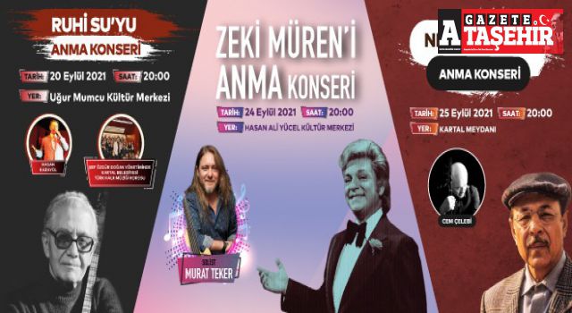 Türk müzik tarihine adını altın harflerle yazdırmış olan usta sanatçılar; Ruhi Su, Zeki Müren ve Neşet Ertaş, Kartal Belediyesi’nin organize ettiği “Ustalara Saygı Konserleri” kapsamında ölüm yıl dönümlerinde anılacak.