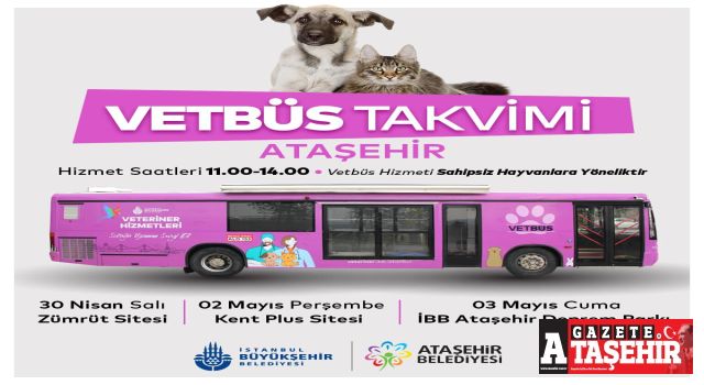 VETBÜS Ataşehir'de saat 11:00 ile 14:00 saatleri arasında hizmet verecek.