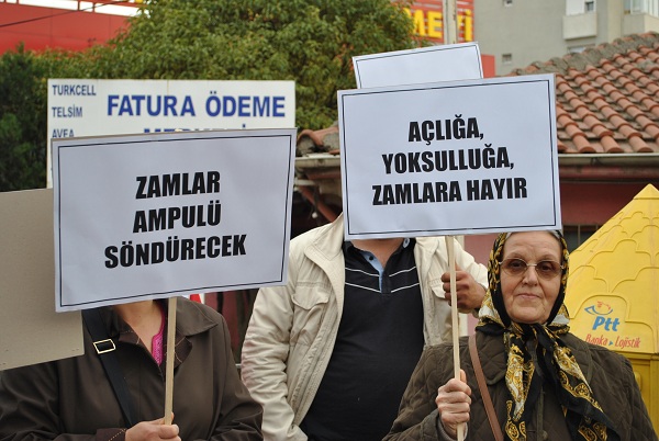 Ataşehir emek ve demokrasi güçleri platformu, 20 Nisan günü AKP hükümetinin elektriğe ve doğalgaza yaptığı zamları Ataşehir AKP binasının önünde yaptığı eylemle protesto etti. İçerenköy Muhtarlığı önünde buluşan eylemciler buradan AKP Ataşehir ilçe binasına yürüdü. Yürüyüş sırasında sık sık “Zam zülüm işkence işte AKP”, “Zam zam zam ucuzluk ne zaman”, “Zamlara hayır”, “İnsanca yaşam istiyoruz” sloganları atıldı.Çevredekilerin ve esnafın alkışlarıyla desteklediği eylemde basın açıklamasını Yürütme Kurulu adına Fatma Terzi okudu. Terzi, sağlık ve eğitim başta olmak üzere kamu hizmetlerinin piyasalaştırılması, kamu arazilerinin yağmalanması, ormanların, suyun satılması, emekçilerin kazanılmış haklarının gasp edilmesine değinerek zamlarla hayatın daha da zorlaştırıldığını söyledi.Enerjinin insanların yaşamsal hakkı olduğu ve zamların derhal geri çekilmesi gerektiğini söyleyen Terzi, aydınlanma, ısınma başta olmak üzere temel ihtiyaçları karşılayabilecek oranda enerjinin halka parasız olarak sunulması gerektiğini vurguladı. Eylem işsizliğe, yoksulluğa, açlığa ve zamlara karşı mücadele etmeye devam edileceği söylenerek sonlandırıldı.Foto Galeri için tıklayınız...[gallery link="file" columns="2"]